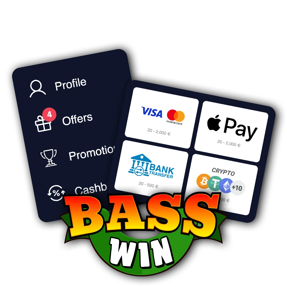 BassWin offers fast and secure withdrawal options for players in the United Kingdom, including Visa, Mastercard, and cryptocurrency methods. The minimum withdrawal amount starts at 10 GBP, whilst the maximum can reach 10,000 GBP per transaction depending on your chosen payment method. Processing times vary from instant crypto transfers to 1-3 business days for card withdrawals. New players can claim a welcome bonus: 375% + 300 free spins for casino section.